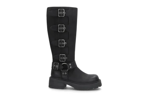 Biker boots med supertrendy firkantet tåparti og tøffe detaljer. Bootsen har har en glidelås på innsiden for enkel på og avtagning, og en robust såle med godt grep. Bootsen er lett varmtfòret og vegansk.