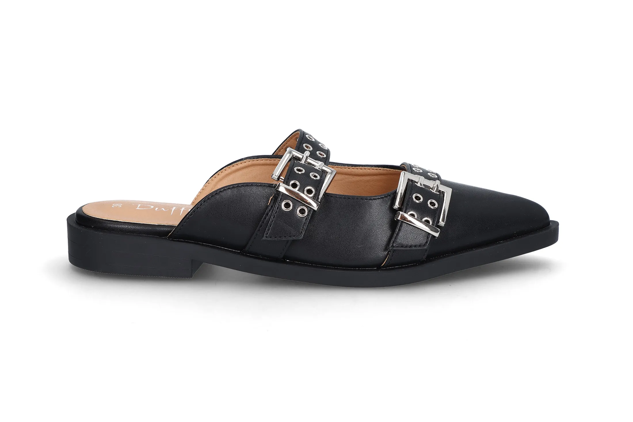 NYHET! Sesongens hotteste sko – ballerina-loafer i slip-in-modell med spiss tå, spenner og slingback. Et must for den som vil være litt mer trendy.
