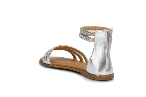 Elegant sandal med lekre strassdetaljer. Modellen har en smart glidelåslukking på baksiden, og elastiske remmer rundt ankelen som gjør at sandal sitter perfekt rundt foten. Modellen har en myk og behagelig innersåle.