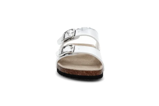 Komfortabel og lett sandal med trendy og tøff overdel i sølv. Myk og behagelig fotseng. Modellen har justerbare remmer for god passform.