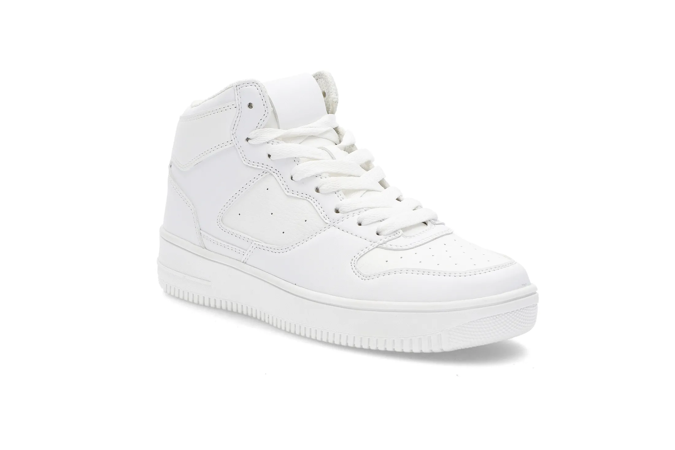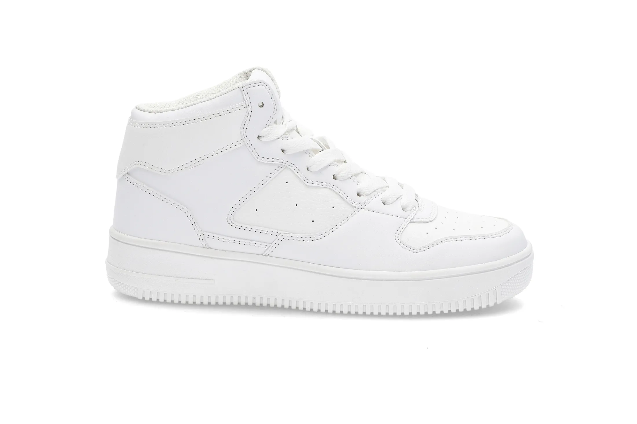 Basket inspirert hight top sneaker fra BLACK. Helhvit snear på trendy platform såle. Myk og polstret kant rundt ankelen for god komfort. Myk og komfortabel innersåle som er uttagbar.