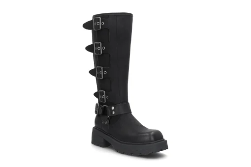 Biker boots med supertrendy firkantet tåparti og tøffe detaljer. Bootsen har har en glidelås på innsiden for enkel på og avtagning, og en robust såle med godt grep. Bootsen er lett varmtfòret og vegansk.