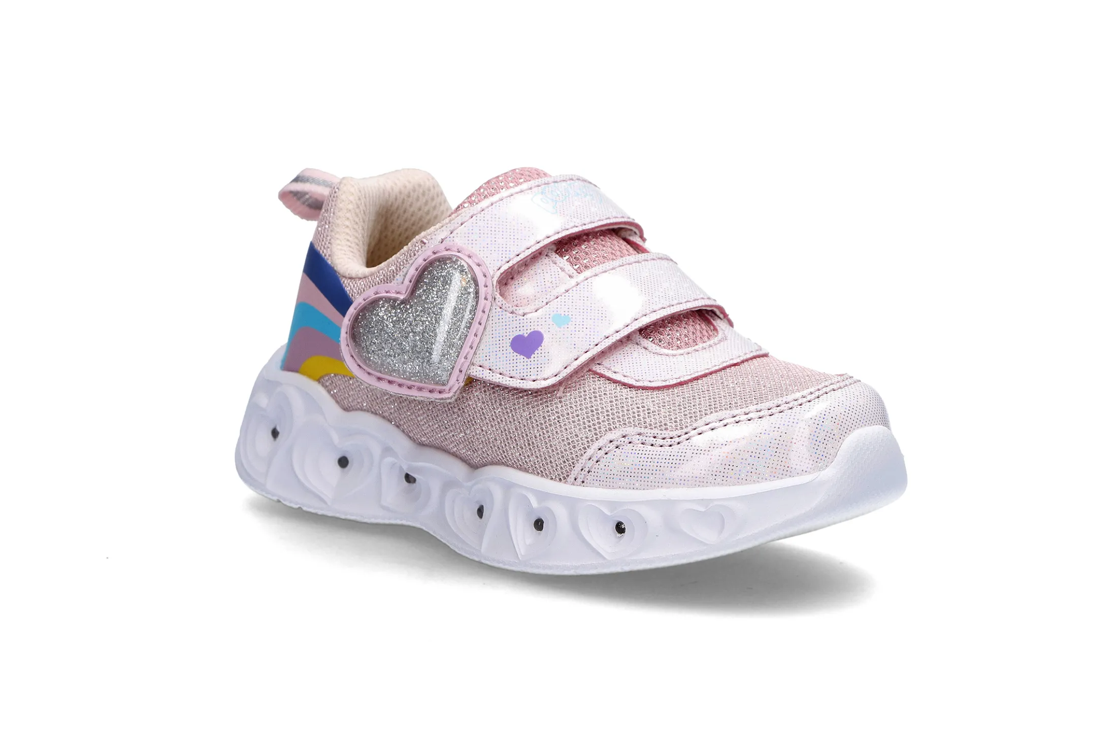 Blinkesko fra Ponny. Superlett såle og stabil hælkappe. En dobbel borrelåse for best mulig justering over vristen. Forsterket tå, for aktive dager. Joggeskoen har utagbar innersåle for enkelt å kunne måle barnets størrelse og passform.