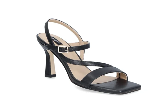 Elegant og lekker remsandal med et trendy og firkantet tåparti. Sandalen har en lekker og stødig snellehæl. Polstret og myk innersåle.
