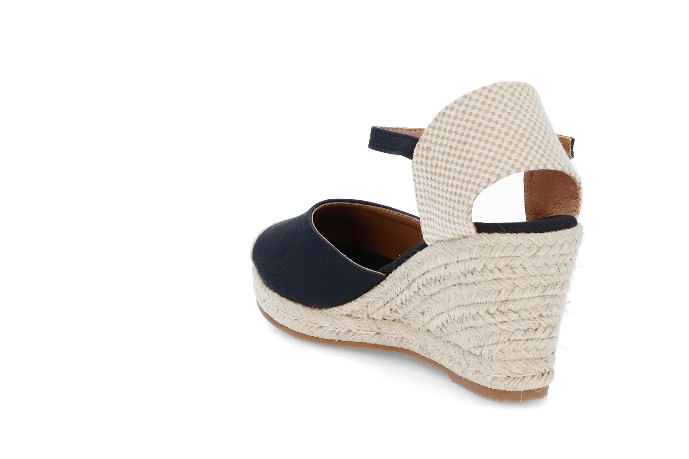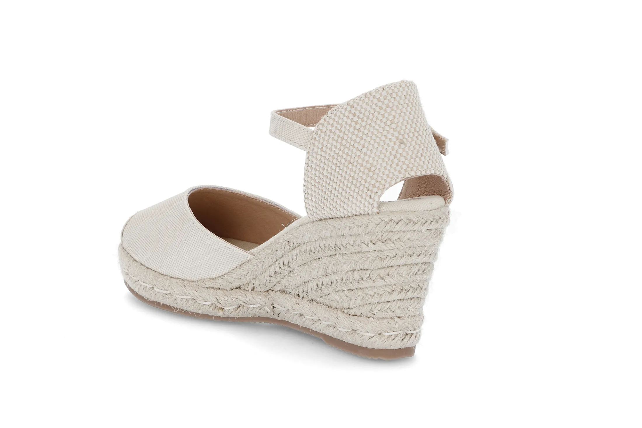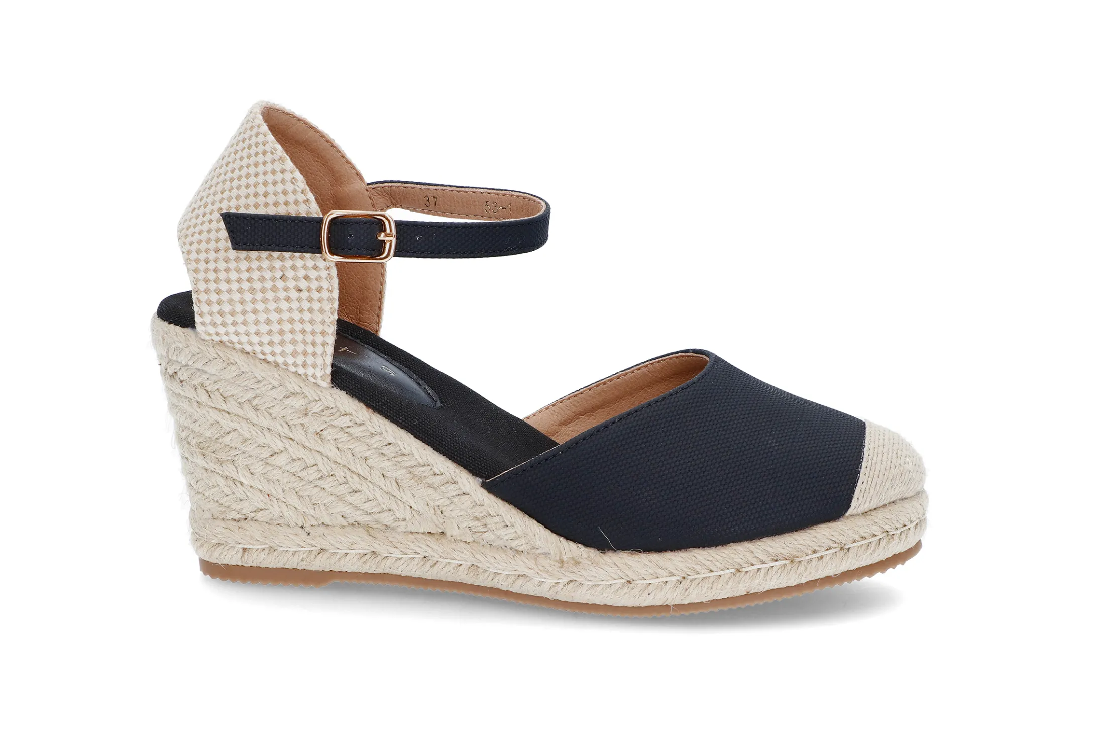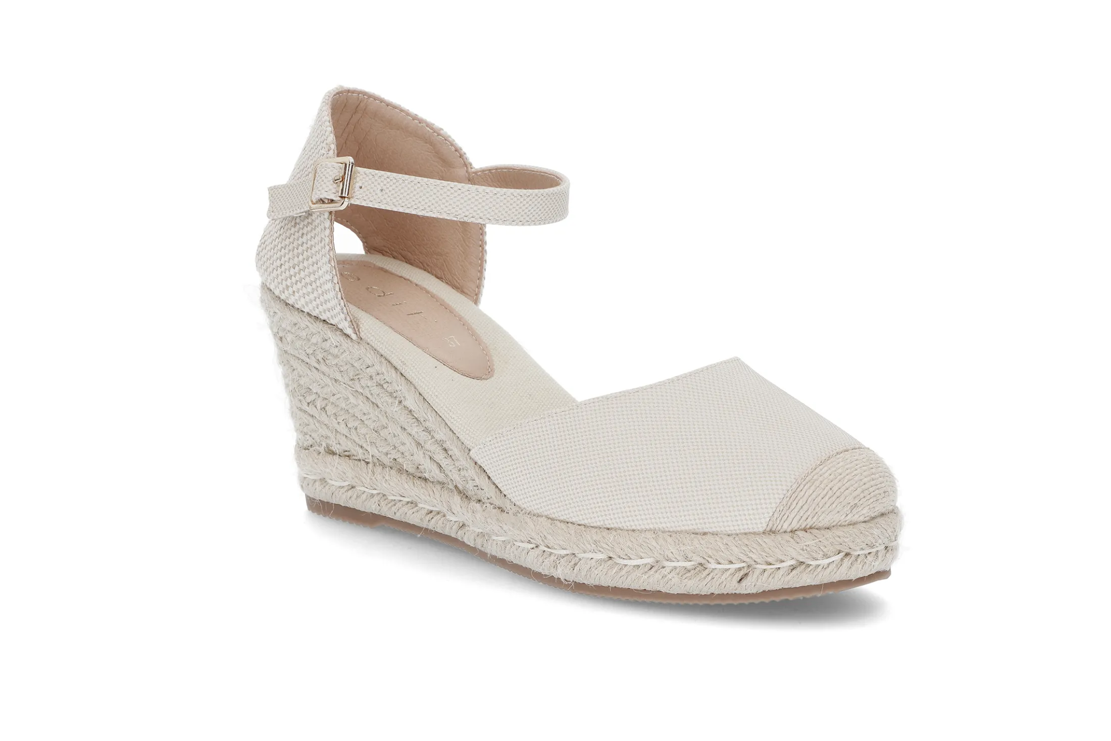 Espadrillos fra Edit på en myk og behagelig kile såle. Espadrillosene har en justerbar ankelrem og en 8 cm høy kilehæl dekket med jutebånd.