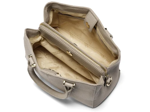 Trendy mini tote bag med klassisk silhuett fra Stockholm DG. Lekre gulldetaljer og smarte løsninger på innsiden. Et stort rom på innsiden som deles av en glidelåslomme i midten. I tillegg har vesken en mobillomme og en glidelåslomme. Vesken har to nette håndtak, i tillegg til en justerbar og avtagbar skulderrem. Lukkes enkelt med trykk knapp/ magnet. Lekker på utsiden, smart på innsiden! Mål: L = 24 cm, H = 18 cm, B = 13,5 cm.