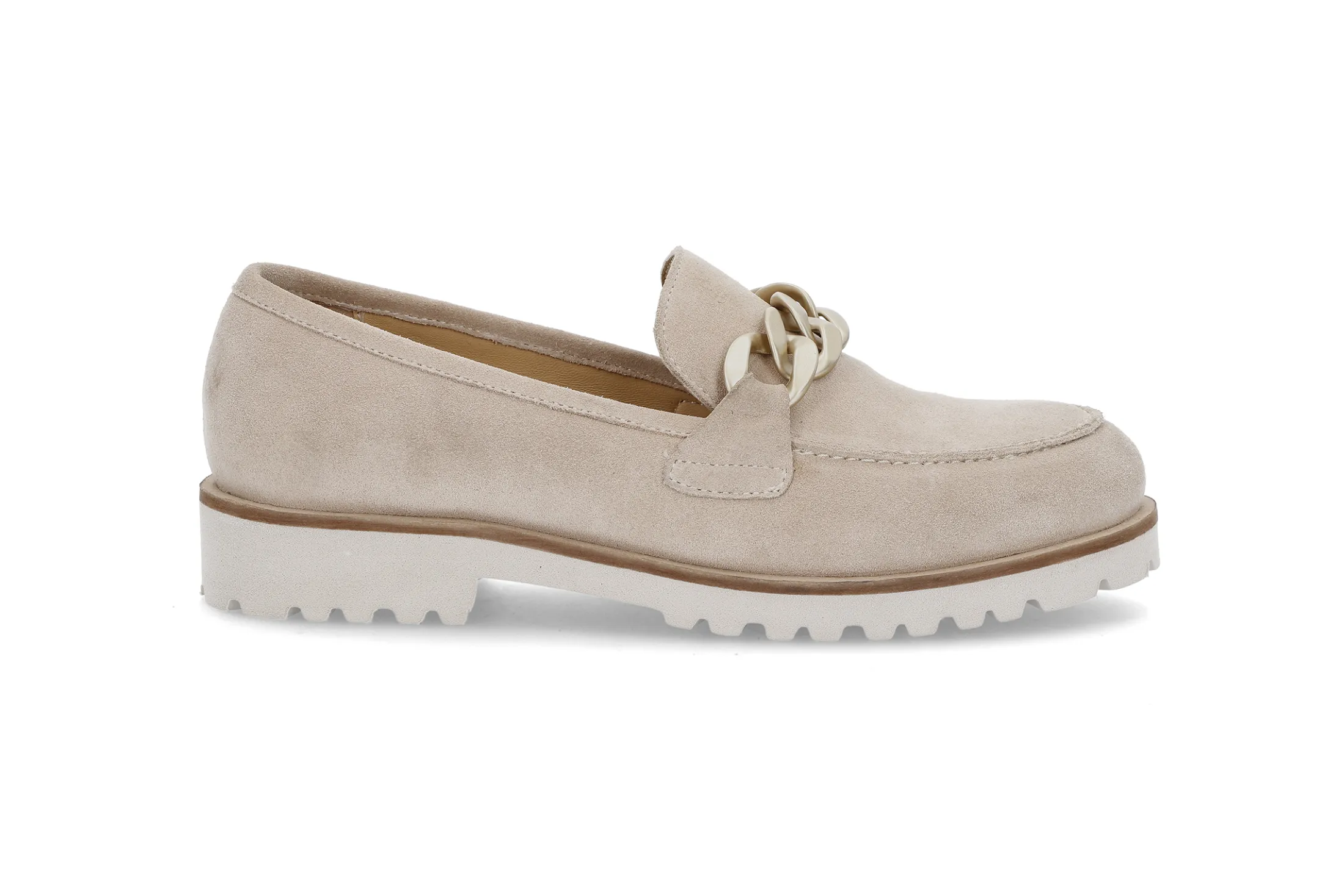 Klassiske loafers i nydelig semsket skinn på komfortabel gummisåle. Myk og behagelig innersåle og lekre detaljer. Modellen er skinnfòret.
