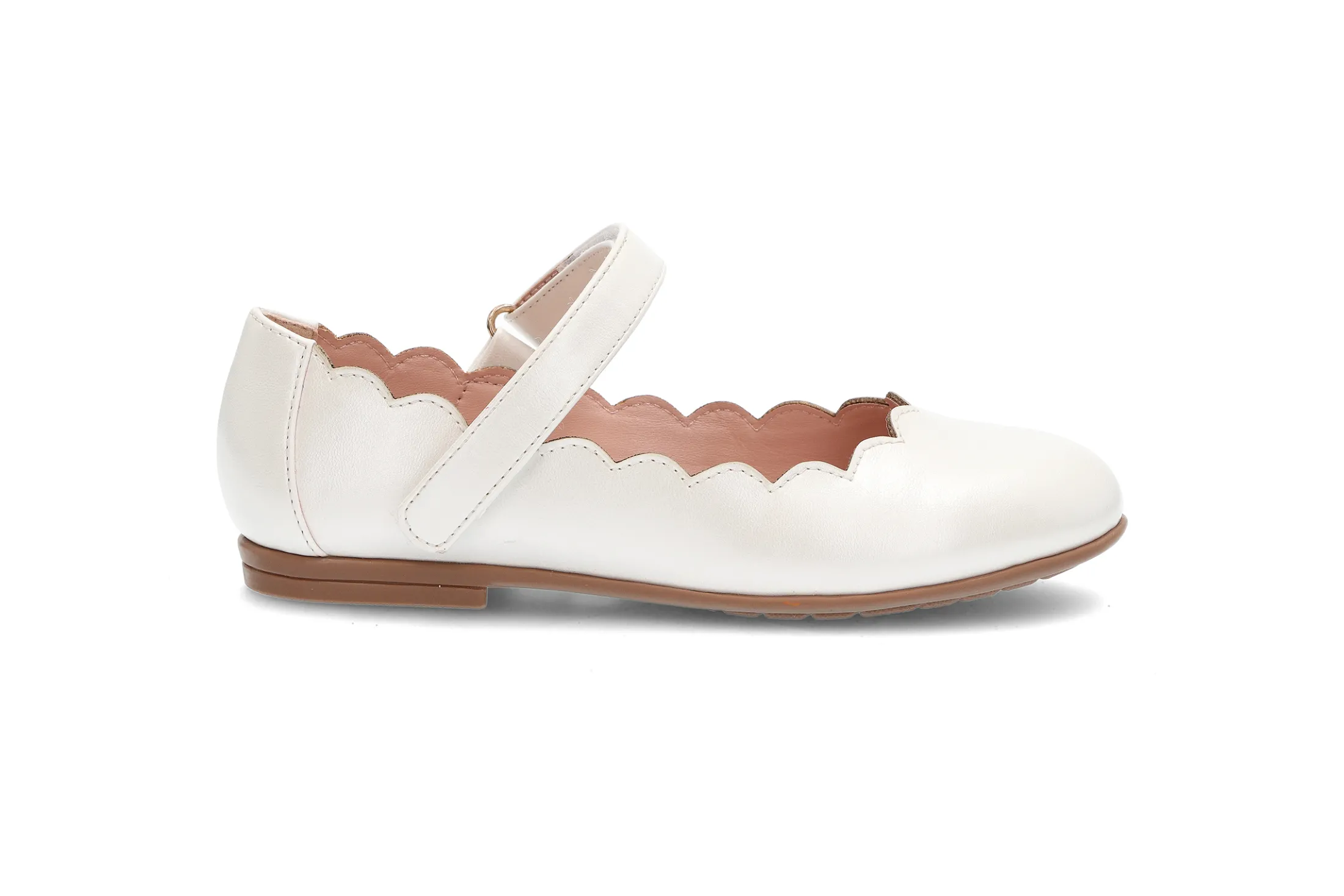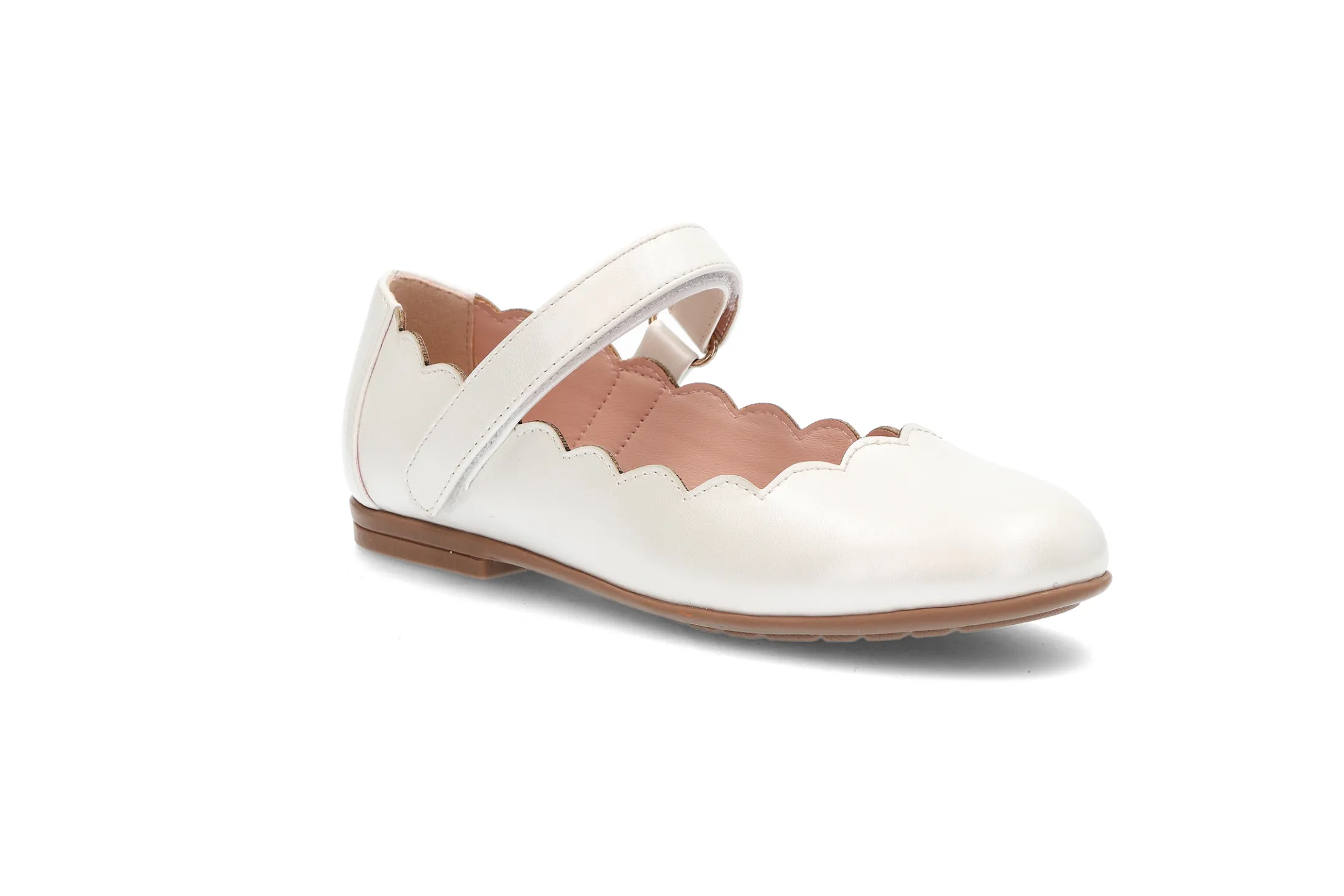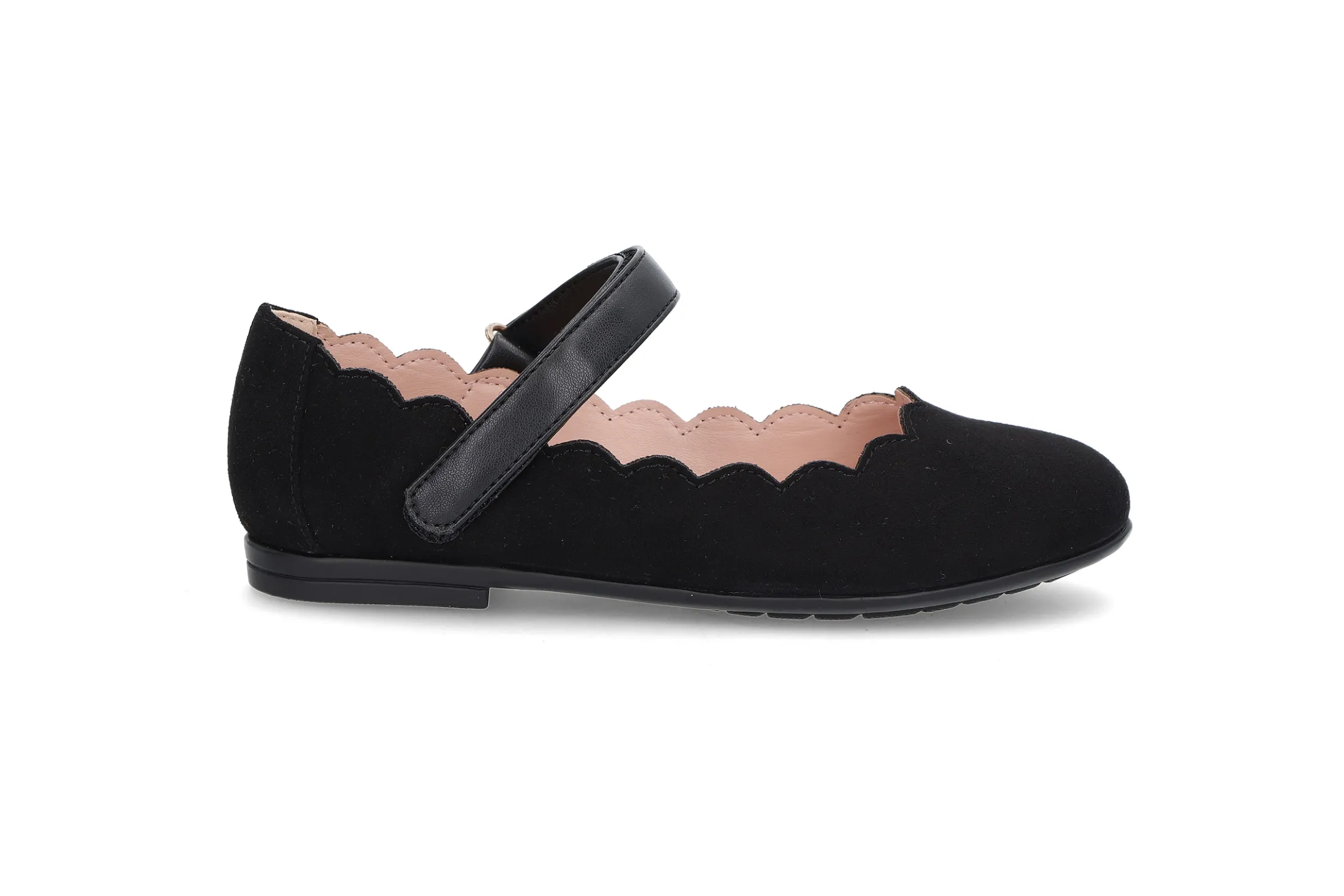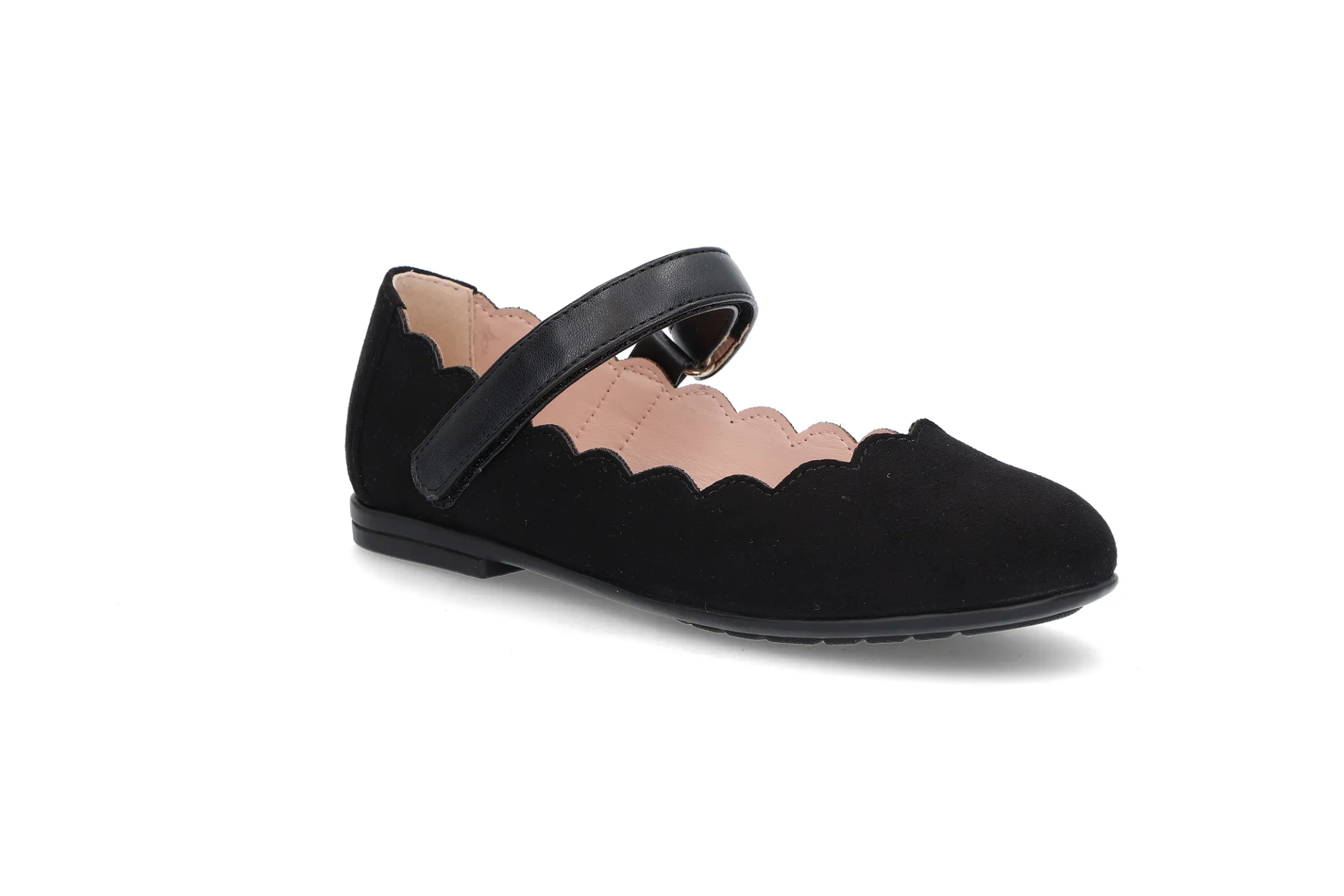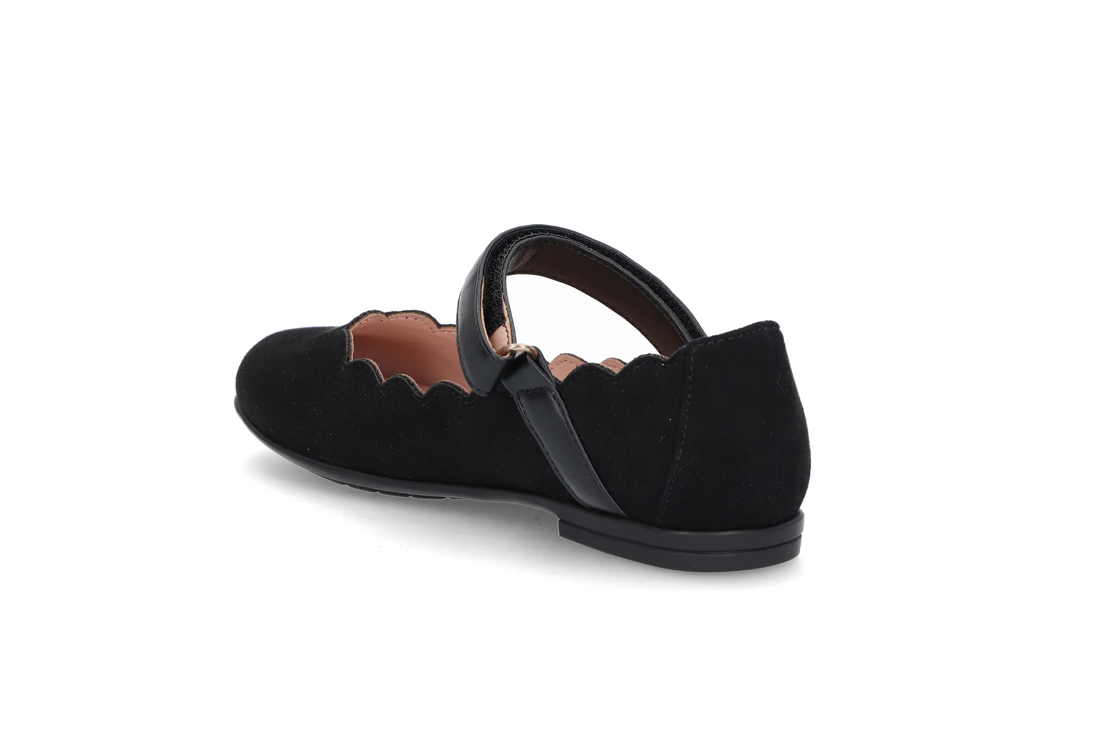 Myk ballerina med justerbar rem over vristen for best tilpasning. Myke gummisåler og søte detaljer.