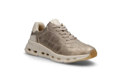Sporty, myk og komfortabel sneakers på lett og supertrendy såle. Feminin og fleksibel sneaker i lekkert gullfarget imitert skinn. Myk og behagelig innersåle som er uttagbar.