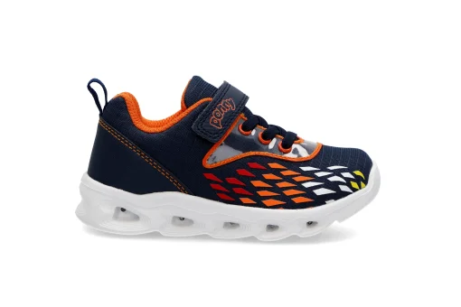 Blinkesko fra Ponny. Superlett såle og stabil hælkappe. Praktisk borrelås og strikklisser for maksimal justering over vristen. Joggeskoen har utagbar innersåle for enkelt å kunne måle barnets størrelse og passform.