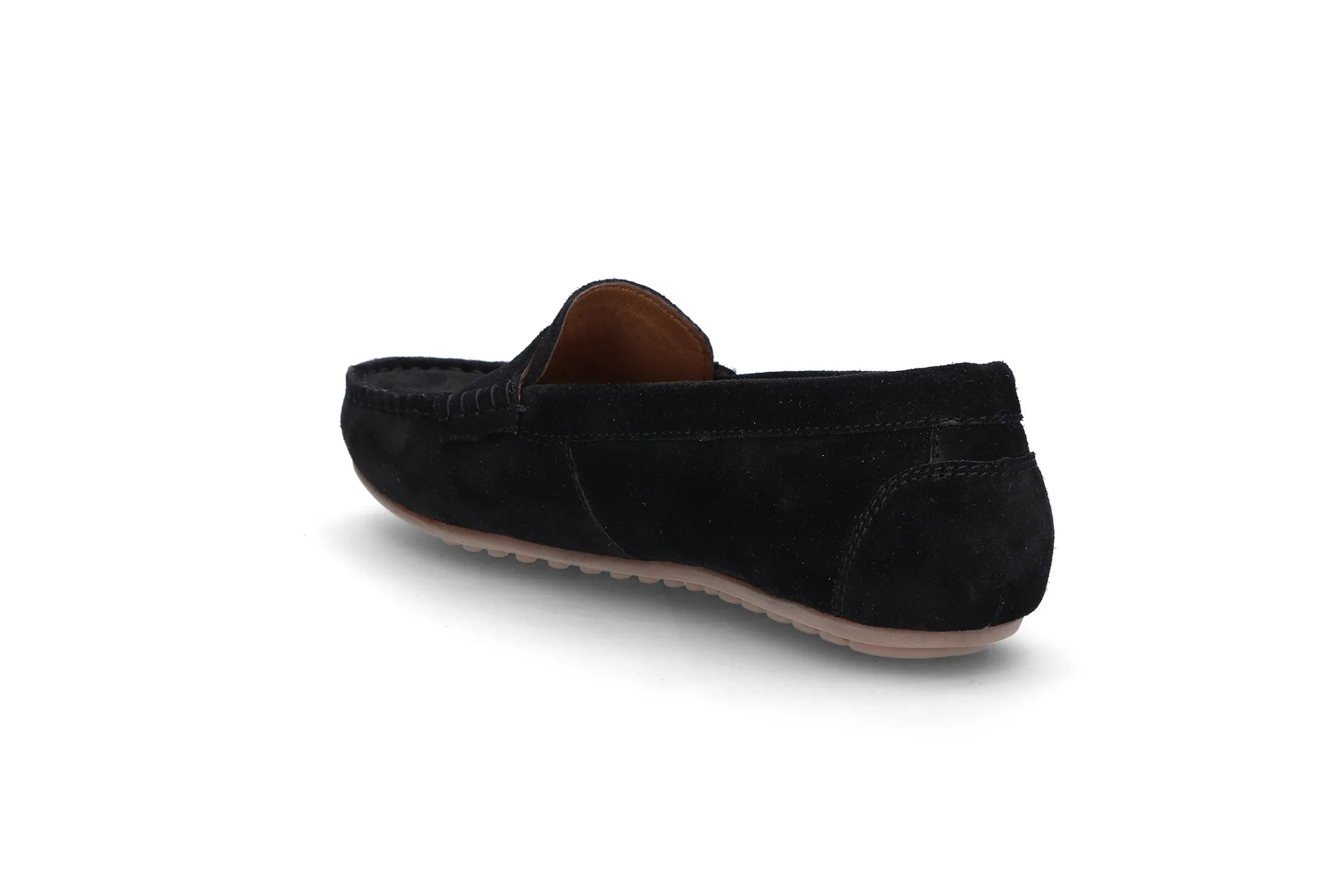 Denne elegante dameloaferen i mykt semsket skinn gir komfort og stil. Det myke semskede skinnet former seg pent etter foten og tilfører, perfekt for både hverdagsbruk og mer formelle anledninger. Skoen er fôret med skinn, noe som bidrar til en behagelig passform og god pusteevne, selv ved langvarig bruk. Den fleksible gummisålen sørger for stabilitet og godt grep på ulike underlag, samtidig som den demper hvert steg.