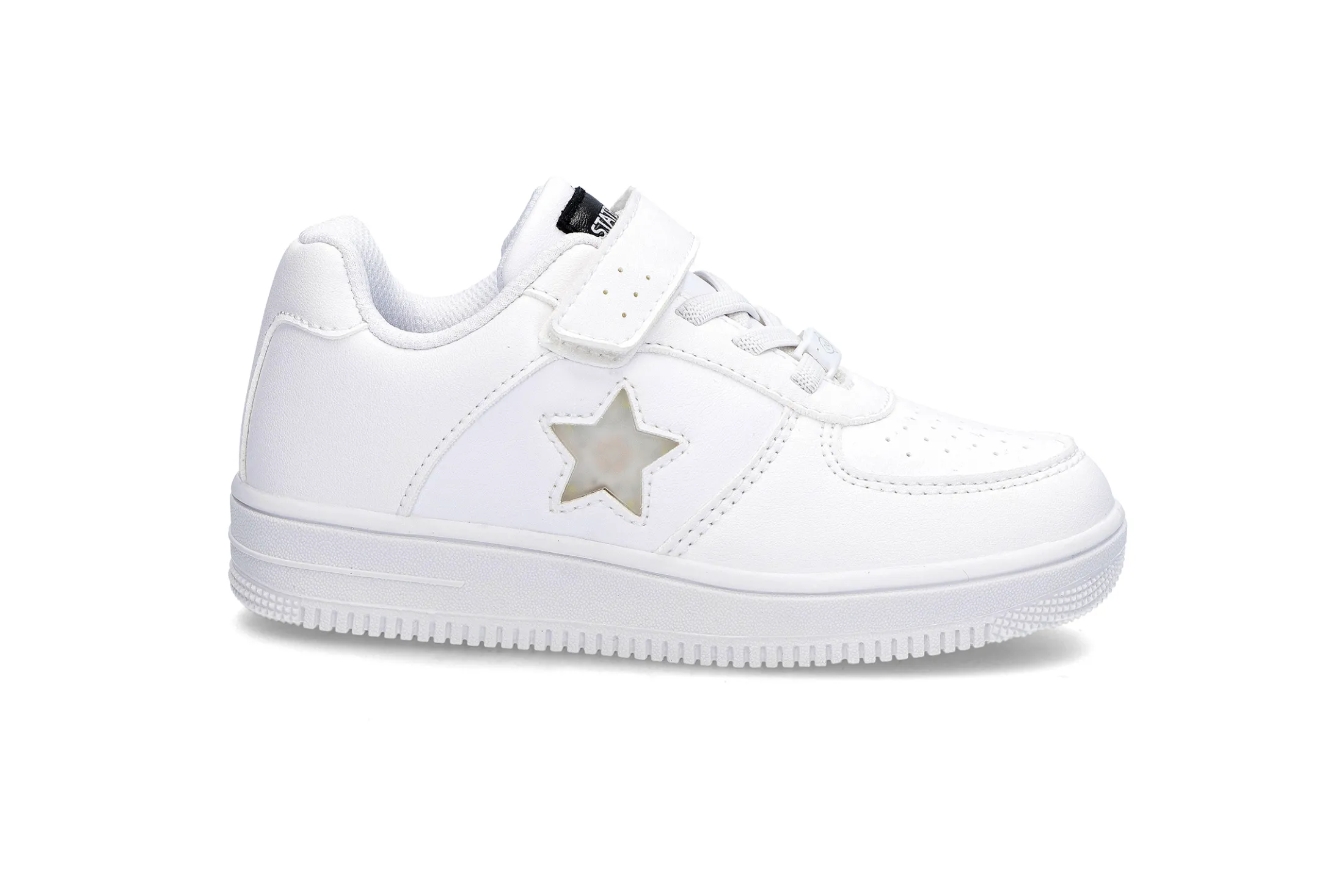 Trendy sneakers med perforerte detaljer og borrelås. Blinkende stjerne på siden. Komfortabel og stabil yttersåle i gummiblanding. Myk og behagelig innersåle.